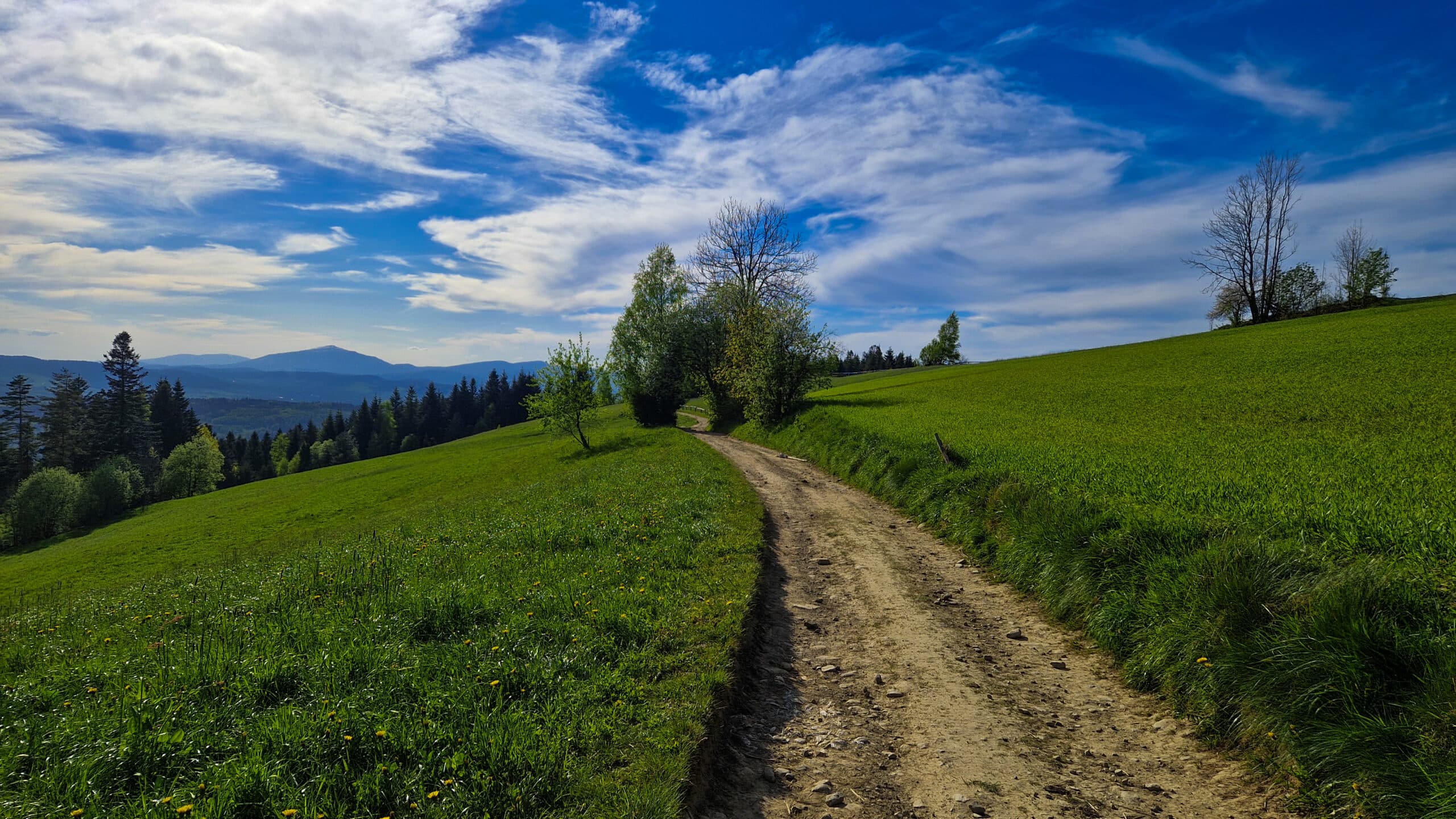 Droga z Maciejowej do Rabki jest bogata w panoramę na Beskid Wyspowy czy Beskid Żywiecki, dlatego przyjemnie się schodziło podziwiając widoki.
