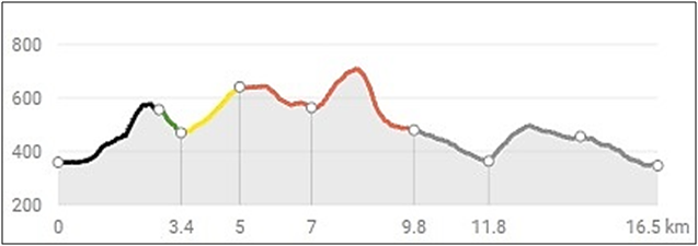 Mrukowa (359 m n.p.m.) – Zamkowa (571 m n.p.m.) – Pomierki (641 m n.p.m.) – Kolanin (706 m n.p.m.) – Wieża Widokowa w Desznicy (501 m n.p.m.) – Grodzisko Walik (468 m n.p.m.) – Brzezowa (401 m n.p.m.)