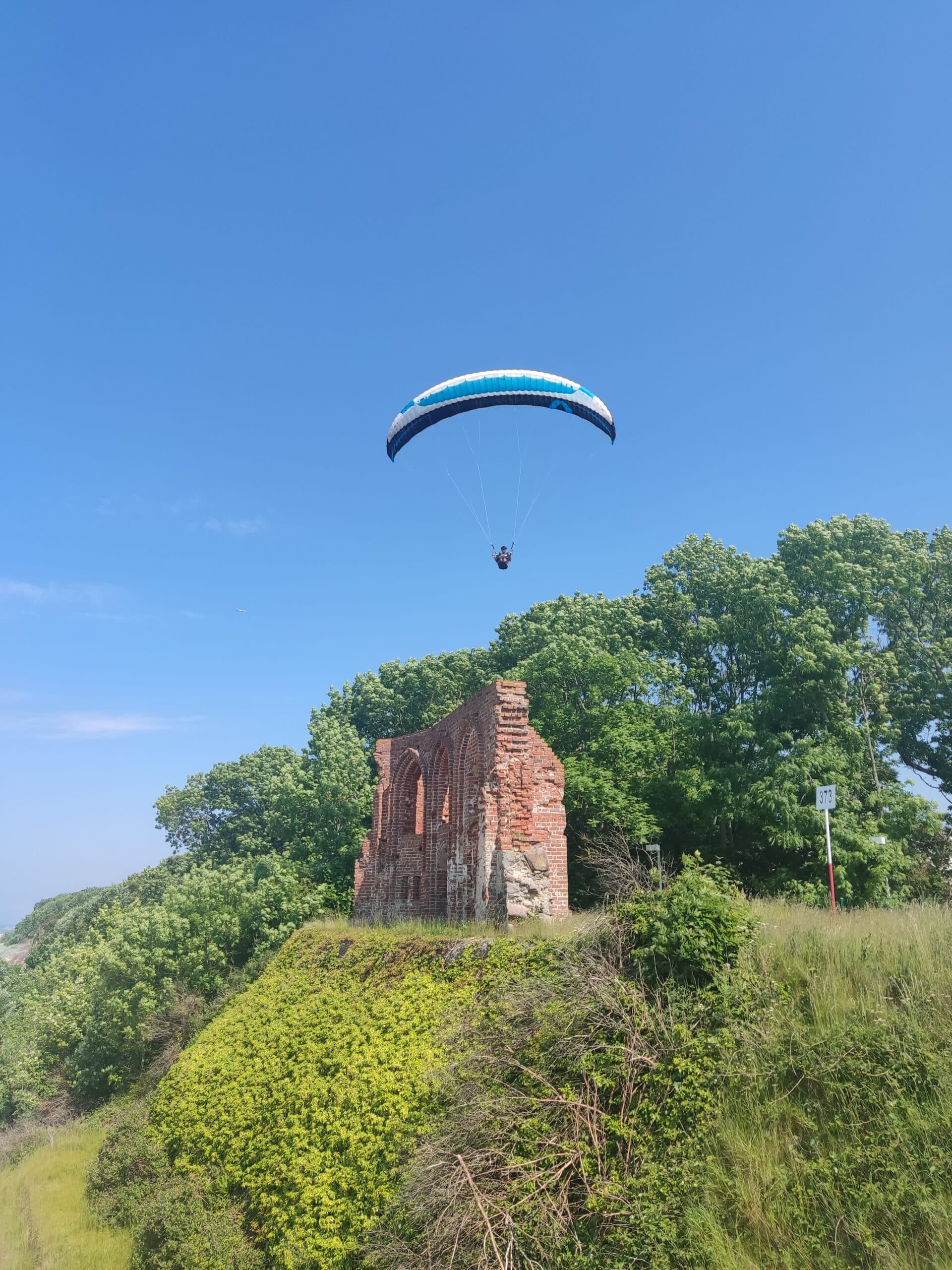 Kolejny dzień okazuje się równie upalny jak pierwszy. Przechodzę obok klifu w Dziwnówku, z którego obserwuje bałtycką plażę, kolejno ruiny kościoła w Trzęsaczu, nad którymi szybują paralotniarze i latarnia morska w Niechorzu, z której obserwuje kolejny etap podróży.