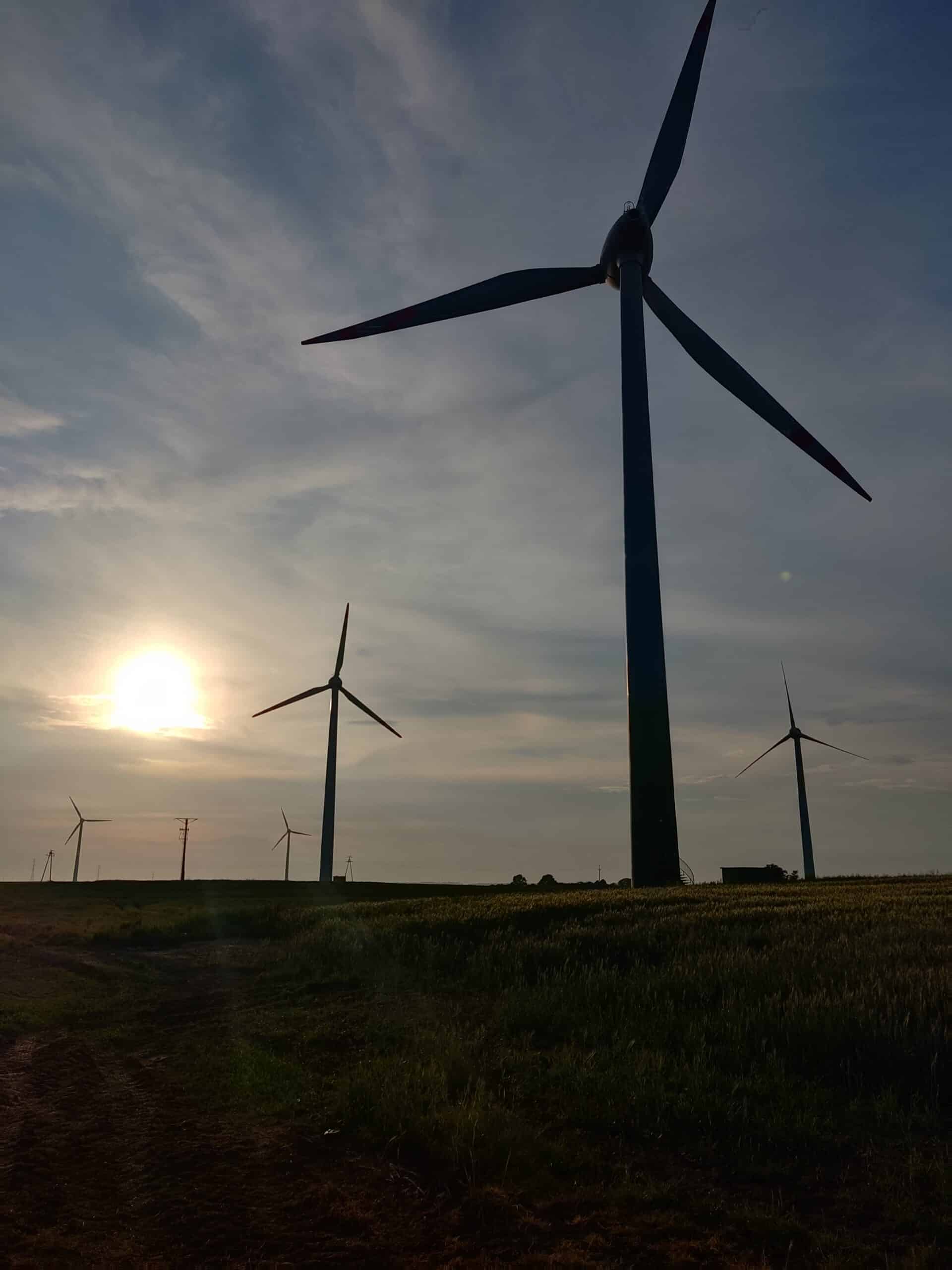 Ostatnie kilometry tego dnia robię przy zachodzącym słońcu wśród farmy wiatrowej, a nocuję w hamaku w okolicy Trzebiatowa.