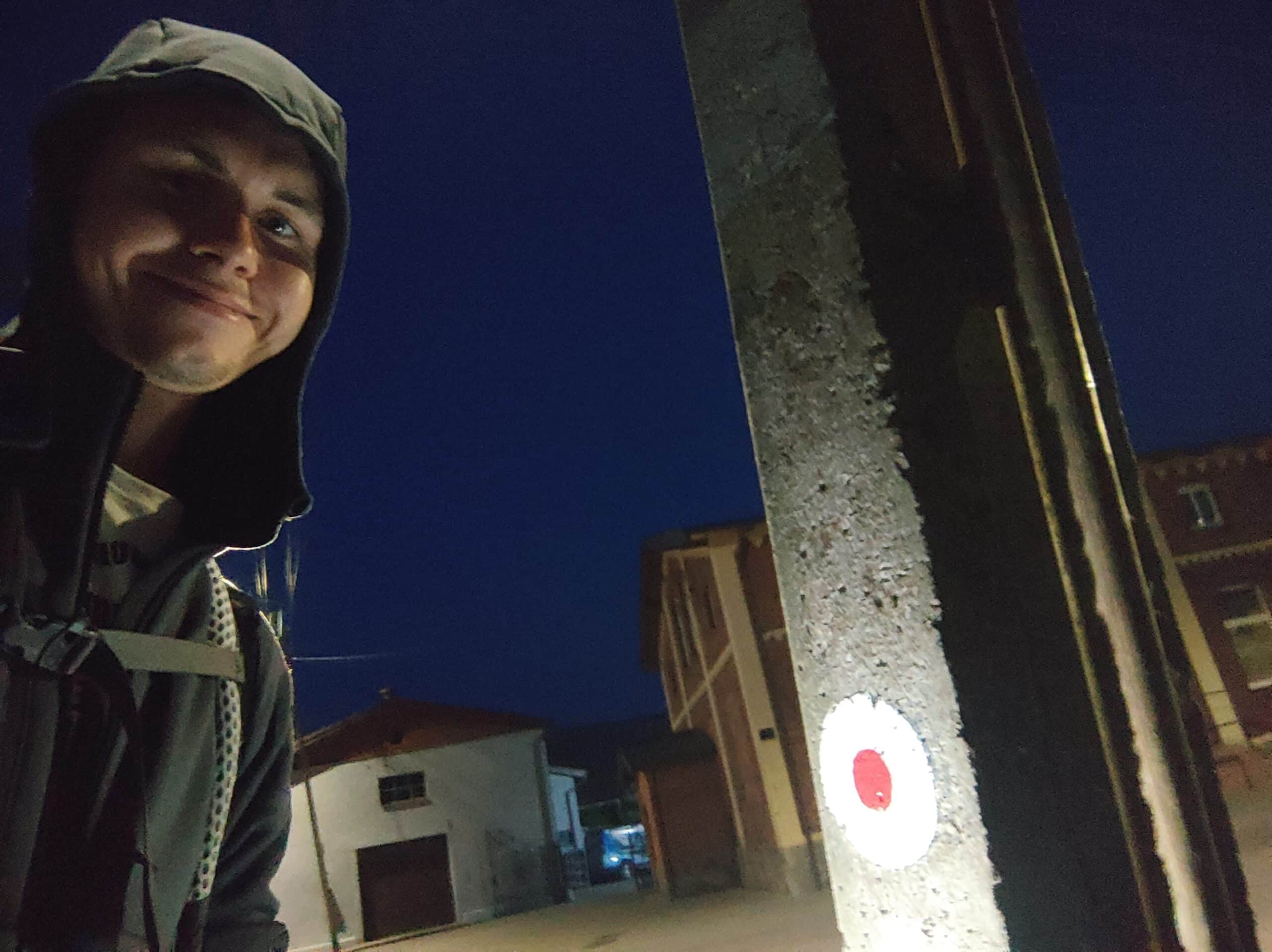 I później już marszobiegiem, aby dotrzeć jak najdalej zanim słońce zajdzie całkowicie za horyzont. Dokładnie o 22:50 docieram do czerwonej kropki w Żarnowcu kończącej Szlak Nadmorski. Do noclegu dochodzę o 23:30, kilka minut przed burzą. Tego dnia przeszedłem 54 km.